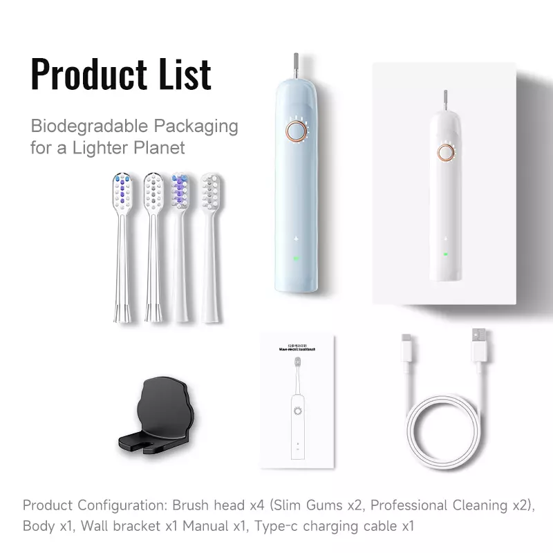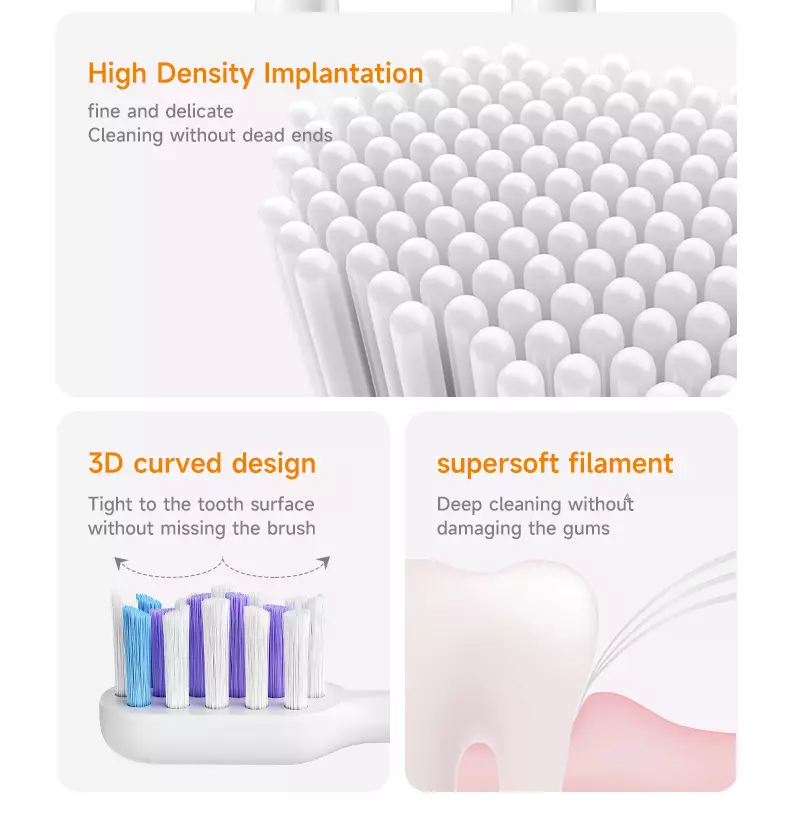 Attribute Details Product Model Ximalong X1 Core Tech Sweep-Vibration (40° Amplitude) + 40000 RPM Sonic Vibration Brush Heads 2 Types (Slim Gums + Professional Cleaning) Filament Feature Ultra-Soft, 3D Curved, High-Density Implantation Modes 5 Adjustable Speeds Smart Functions Lift-to-Wake, Auto-Sleep, Flight Mode Waterproof Rating IPX7 (Submersible) Battery 900mAh (60-Day Endurance) Charging Type-C USB Design Ergonomic Curved Groove Handle, Lightweight (28cm × 15cm) Colors Pink, Light Blue, White, Black Included Accessories 4 Brush Heads, Wall Bracket, Charging Cable, Manual