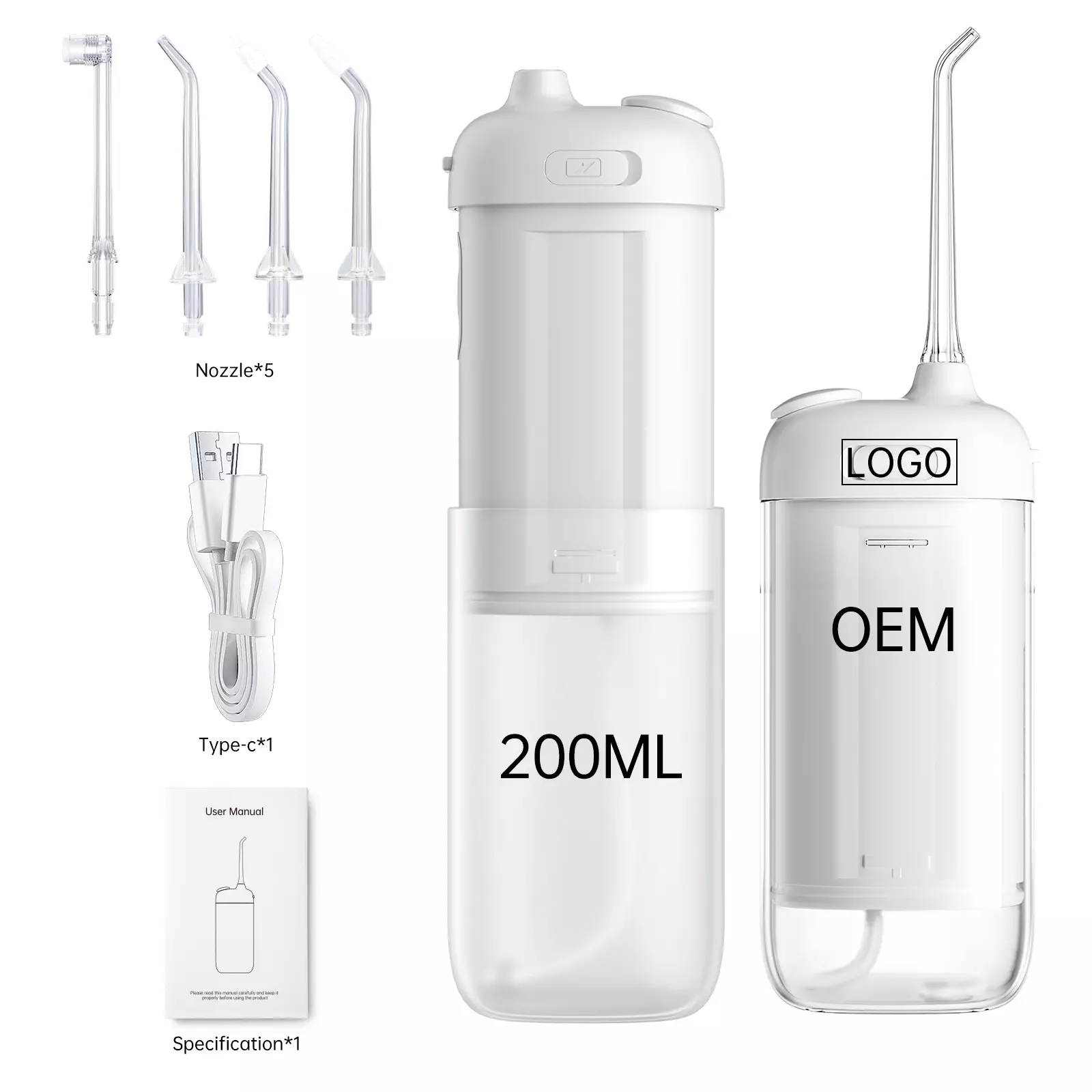 Package 2 nozzles, USB-C cable, travel bag, user manual