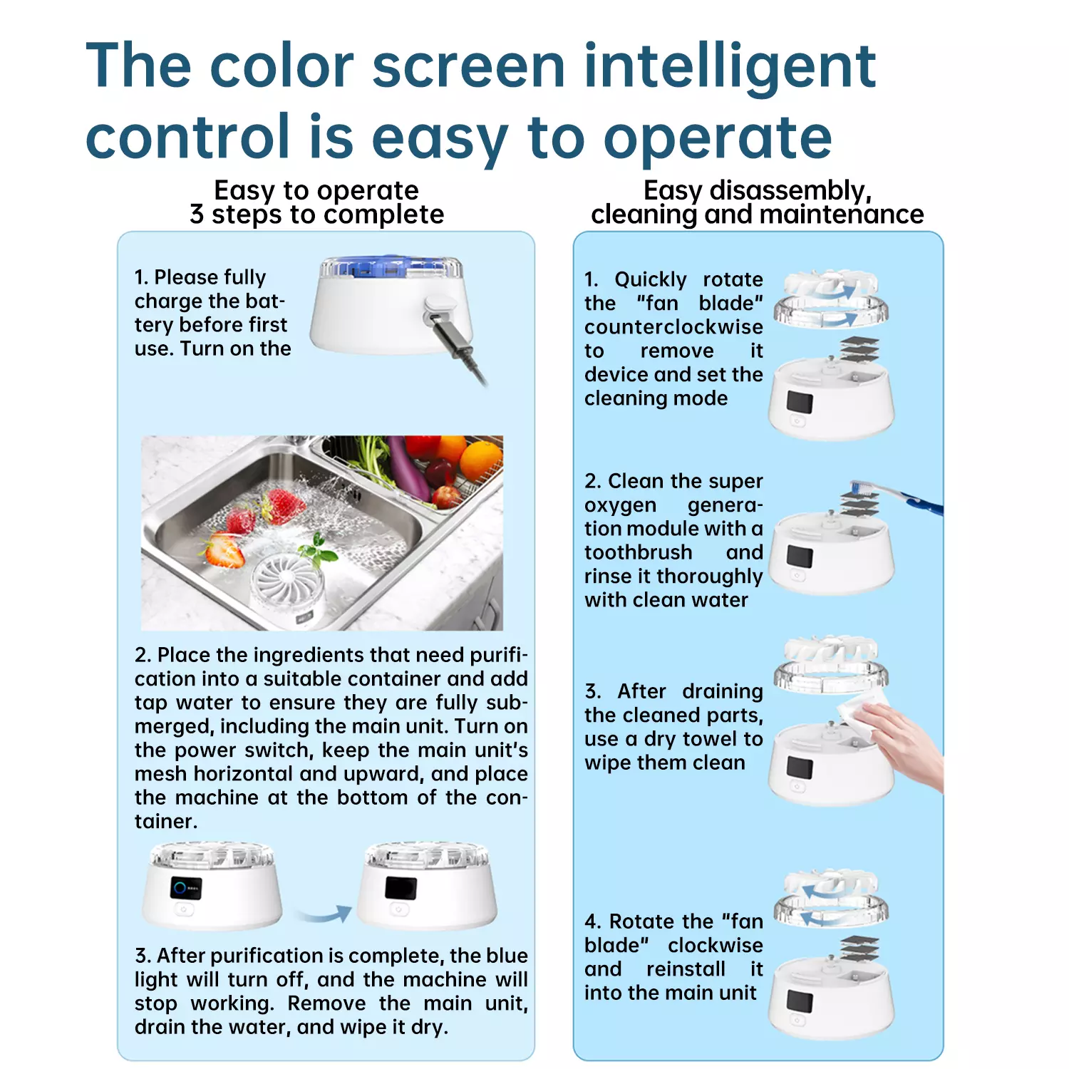Portable Ozone Fruit & Vegetable Washer: 99.9% Pesticide/Heavy Metal Remover for Fruits, Veggies & Meat