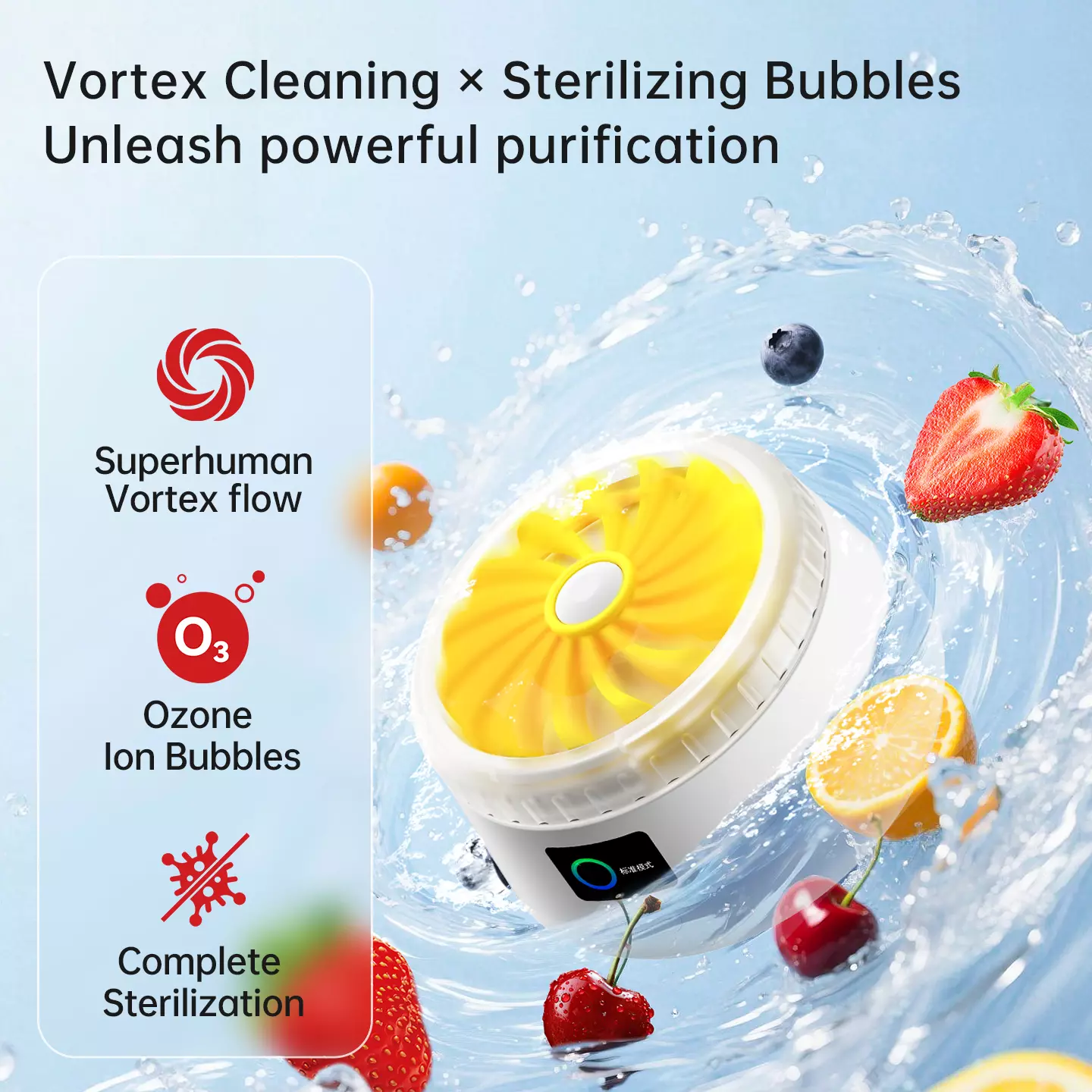 Cleaning Technology Dual-Mode Vortex Flow + Ozone Ion Bubbles (Standard/Intensive Mode)